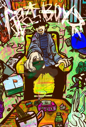と、思ってかいたのがコレです。ゴッチャゴチャしてる感じなんだよね。dめお、ごちゃごちゃしてる中に、シンプルさがあって。かつ色鮮やかなそんなイメージを放つ銀杏BOYZ。永遠の青春ロックバンドだ。