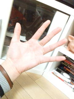 右手の中指の付け根にコブがある