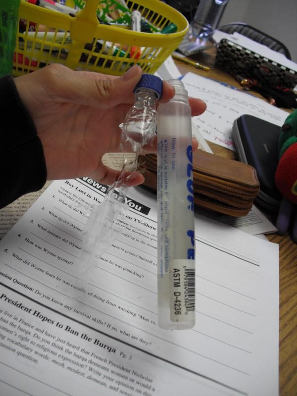 ノリを使おうと思ったらなんと容器の中でかたまってらっしゃるノリさん。私はそのノリの塊が取りたくなって、塗るとこを必至に開けて引っ張り出したのがこの写真です。
