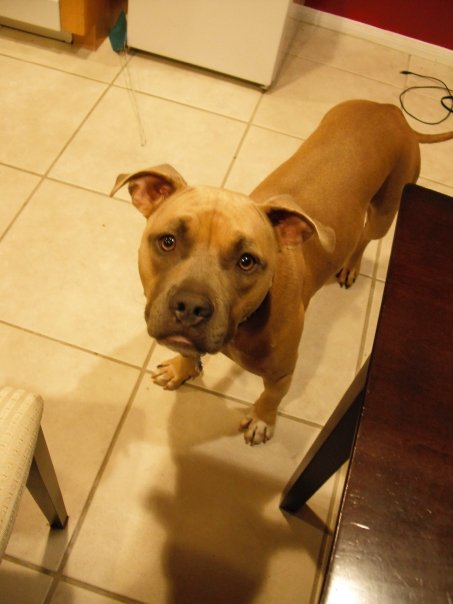 この子の名前はアリーちゃんです。女の子にしてはちいと筋肉質なわんこですが、一応女の子です。ご主人のアシュリーの後ろをてくてくついて歩いている姿はなんとも微笑ましい限りです。たまにキッチンで料理をしていると、「ちょーだいちょーだい」としっぽをプリプリしながらこんな風に上目づかいでおねだりしてきます。たまらなくなってムギュ~としてしまうのはアリーちゃんの魅力なのでしょうか。 何がたまらないってこの口ですよ口!!むぅ~ってゆう口がもうたまらないっっ!横から見たらわかるのですが、横の口がみよ~んとなっているんです。そこをひっぱるのが好きな私はアリーを撫でるとき横の口をひっぱるのが楽しみ。
