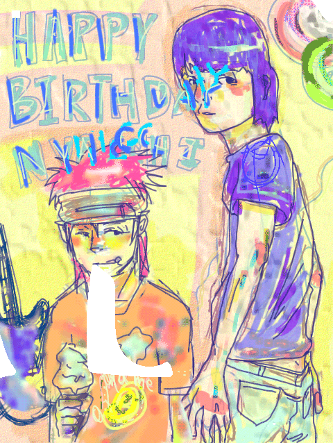 にゃっちの誕生日祝いに描いた。ヒロトとマーシーです★